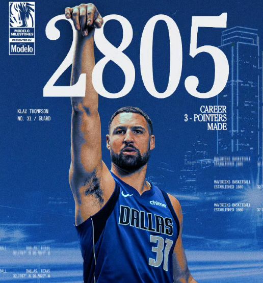 克莱命中6记三分得到赛季新高的26分,生涯三分命中数达到2809记三分,超越利拉德2804记三分,升至NBA历史第4位,仅次于库里、哈登与雷-阿伦。