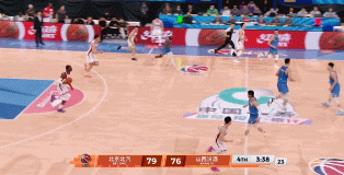 潘江重新换上刘传兴、张宁,许利民按兵不动,周琦再上反篮扩大领先,关键时刻诺威尔弧顶三分帮山西止血,3分29秒,杰曼加速一条龙完成高难度2+1反击上篮,势不可挡!