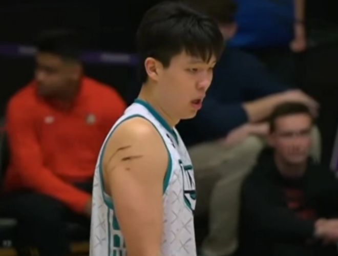 杨瀚森内线封盖前16号秀扎伊尔-史密斯的扣篮。
