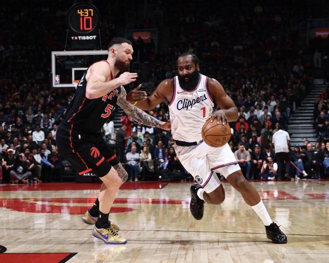 再看哈登,快船对阵猛龙的比赛堪称“大胡子的救赎之战”。莱昂纳德伤停,快船缺了攻防核心,开局就被猛龙打蒙了,最多落后14分,第一节打完就24-32落后8分,半场结束更是52-61落后9分,看得球迷都捏了一把汗。可哈登偏不信邪,第三节开始慢慢找回节奏,到了第四节最后时刻彻底爆发,连续突破上篮、造犯规罚球,一人连得6分把比分追平,可惜压哨绝杀中投稍稍偏出,比赛进入加时。加时赛里,哈登直接化身“关键先生”,先是两次造犯规稳稳罚中4分,接着面对防守干拔中投命中,最后用一记标志性的后撤步三分稳住局势,硬生生带领快船121-117逆转取胜,豪取5连胜不说,还帮球队反超灰熊升到西部第十,成功挤进附加赛区域。整场比赛哈登拿下31分10助攻的准两双,尤其是第四节和加时赛的连续关键得分,完全展现了作为球队领袖的担当。要知道赛季初哈登还因为状态起伏饱受质疑,可这波5连胜期间,他场均贡献28+8+10的全能数据,用实际行动打脸了所有质疑者,那个曾经的MVP级别的哈登,真的回来了!