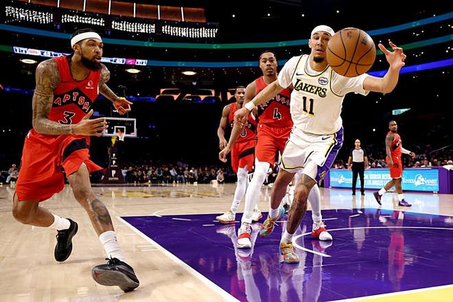 在此前的一场NBA常规赛中,主场作战的洛杉矶湖人以110比93战胜了多伦多猛龙。本场比赛后,结束了两连败的湖人的战绩提升到了25胜16负,继续排名西部第6位,与身前的休斯顿火箭的胜场差依然是半场;而遭遇了两连败的猛龙的战绩则是下滑到了25胜18负,继续排名东部第4位,但与身后的克利夫兰骑士的胜场差只剩下了半场。