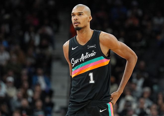 在爵士队VS马刺队的比赛中,乔治攻下30分+3篮板+6助攻,努尔基奇贡献20分+9篮板+5助攻,爵士队却溃不成军,一度落后24分,比赛早早失去悬念。马刺队这边,全队7人得分上双,福克斯和卡斯尔联手贡献32分+16篮板,文班亚马更狠!文班出战26分钟,18投10中(三分球12中7),罚球6中6,狂轰33分+10篮板+1助攻+2抢断+2盖帽的豪华数据。据统计,7记三分球是文班个人赛季新高。同时,这是文班第32次砍下30+,追平马努并列马刺队史第9位。