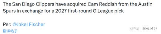 根据记者杰克-费舍尔报道,湖人旧将卡姆-雷迪什,已经前往发展联盟效力。说起来还有些一波三折,本来雷迪什隶属于奥斯汀马刺,但圣地亚哥快船队似乎很喜欢他,不惜用一个明年发展联盟首轮签,把雷迪什给换回来。