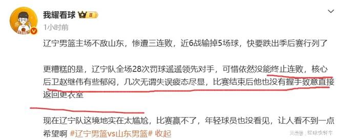 辽篮三连败被打崩溃?赵继伟赛后拒绝与山东握手:输球又败人品?