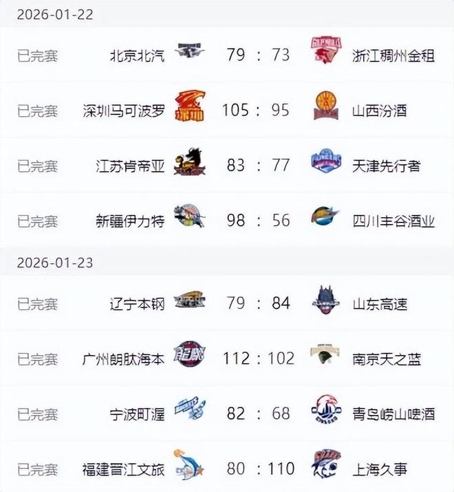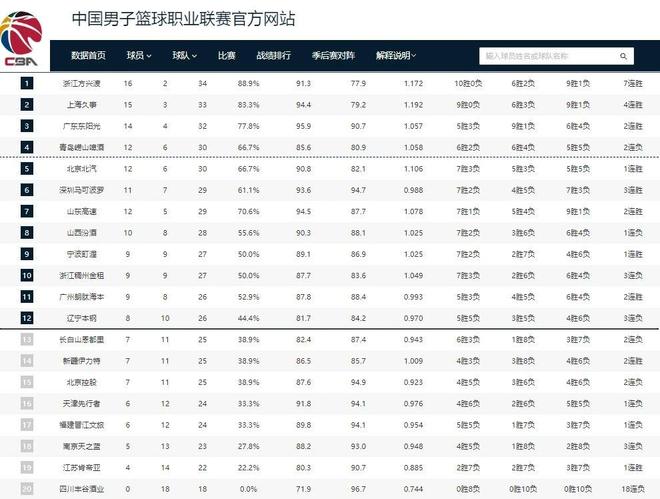 CBA排名更新!广东上海连胜,辽宁低迷排名第12,山东第7新疆复苏