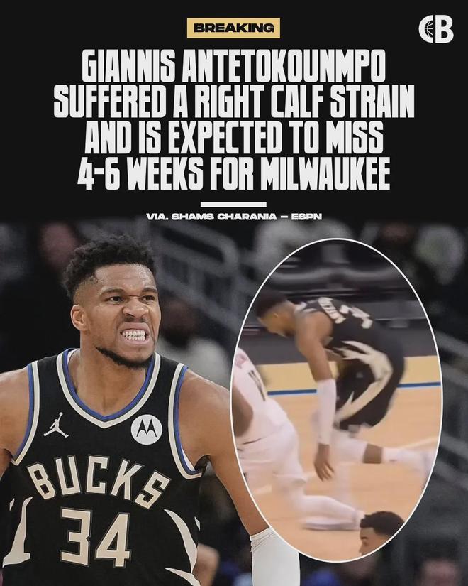 字母哥赛后接受采访时说:“我会在明天做一个核磁共振检查,我可能是小腿比目鱼肌或者其他地方出了问题。队医应该会给出一个4到6周的恢复时间,这是我根据以往经验推测的。希望我复出时,球队还能保持竞争季后赛的位置。”