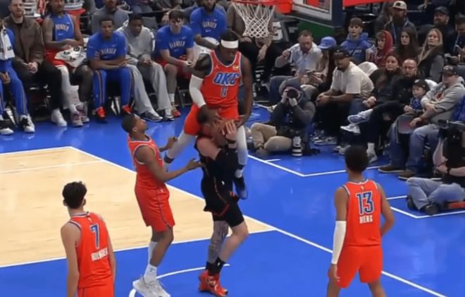第一节的时候,多尔特封盖直接骑在马穆头上,要不是马穆人品脾气好,多尔特第一节就要报销了,能安全落地,全凭马穆有体育精神。