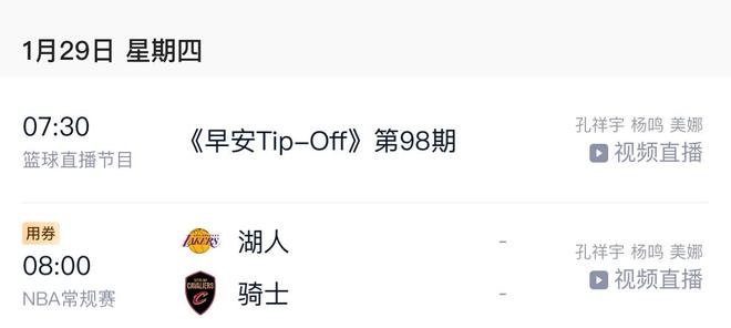除此之外,在官宣下课之后,根据曝光的动态,杨鸣将在1月29号做客腾讯体育解说湖人客场对骑士的比赛,这也是为了丰富自己的生活吧。反正他现在已经出现在了解说名单中,大家还是可以看到杨鸣的身影。