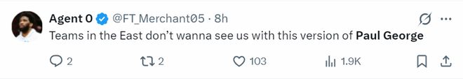 费媒:东部各支球队都不希望我们得到这个状态的保罗-乔治。(暗示东部各队颤抖吧)