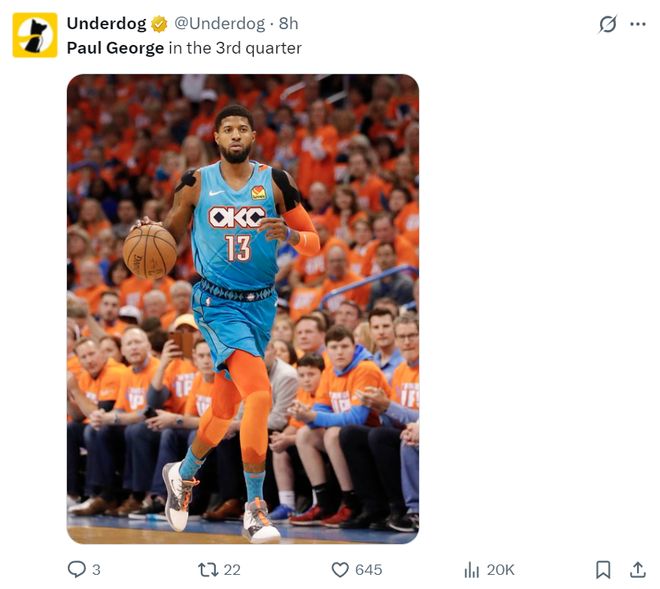 美媒Underdog都已经盛赞泡椒梦回巅峰了,因为18-19赛季的乔治是MVP排名第二的超级巨星。