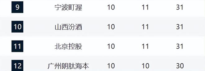 宁波、山西、北控和广州都是10胜,他们排在9-12。这期间山西和广州全部都是连败,山西是因为张宁的缺席,已经四连败了。广州这轮则输给了福建。北控保持三连胜,他们终于崛起了,这还是他们本赛季第一次三连胜,内线整体的发挥非常好,成为基本盘。宁波这轮战胜辽宁,让他们拿下了卡位战。