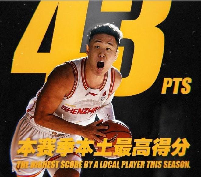 昨天晚上的比赛,深圳队在客场以92-101不敌上海队,遭遇两位数的大比分逆转。这场比赛深圳队的贺希宁出战35分30秒,投篮26中14,拿到43分4篮板2助攻3抢断的数据,这不仅是他本赛季得分新高,也是他职业生涯单场得分第二高的数据,同时他还打破了此前郭昊文保持的本赛季国内球员单场得分纪录。
