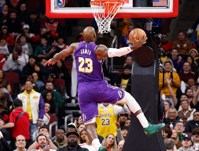 如果说霍姆格伦是以战绩联盟第一的二当家身份,拿到入场券,那老詹的入围,确实让全明星逐渐变味。我们尽量站在公平的角度去评价老詹本赛季的表现,先看数据,首先,詹姆斯本赛季场均21.9分5.8篮板6.6助攻,在年满41岁的情况下,能打出这个级别数据,前无古人后无来者,他的自律性,以及对身体的维护程度,确实达到无与伦比的地步,但客观事实是,他已经41岁了,准确来说,从3年前,他就开始牺牲防守端,维持数据的基本盘。而本赛季,这一行为已经到了最大化。我相信很多球迷都看过詹姆斯防守端的一些行为。