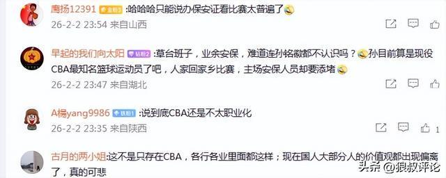 草台班子,业余安保,难道连孙铭徽都不认识吗?孙目前算是现役CBA最知名篮球运动员了吧,人家回家乡比赛,主场安保人员却要添堵。