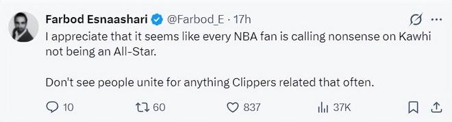 "快船官方用三个省略号鸣不平,这操作太心酸了,建议伦纳德下次直接买断去湖人!"