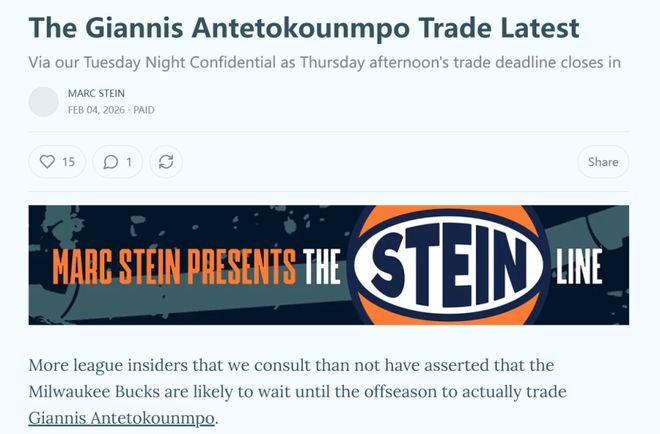 Substack名记Marc Stein也曝出紫金军团的确在积极谋划,计划在2026年选秀夜之后利用三个可交易的首轮签(2026年、2031年和2033年)与签换权成为字母哥的主要追求者。