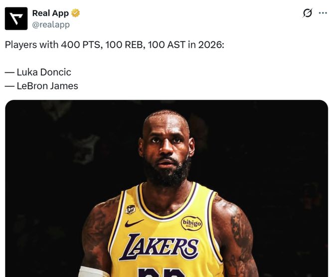 本场詹姆斯16中10又高效拿下25分3板7助3抢断,正负值+24全场第二,这让詹姆斯成为26年以来联盟唯二拿到至少400分100板100助的球员之一,另外一人是东契奇。