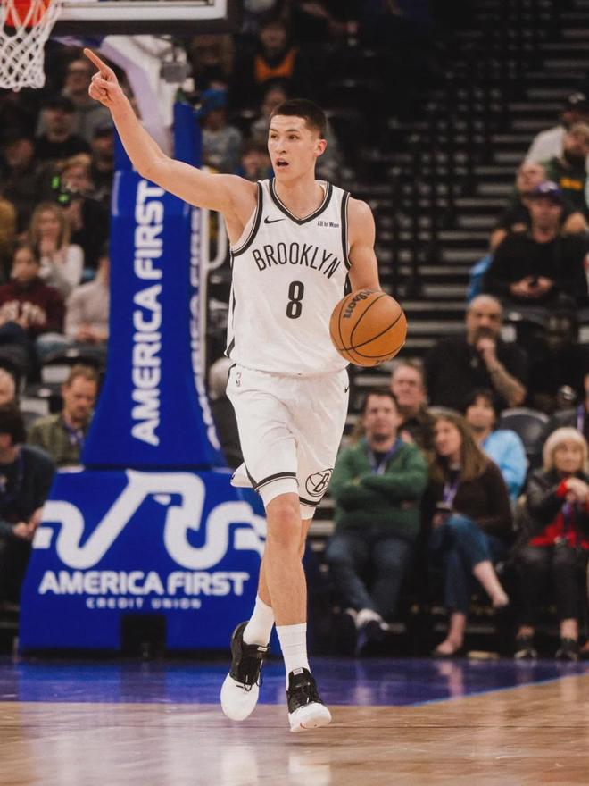 到了NBA,杰明把三分球练出来了。本赛季他在篮网打了42场,其中35场首发。场均出战24.6分钟,得到10.5分3.1篮板3.4助攻0.8抢断1.7失误,三项命中率:40.3%,39.5%,85.7%。场均出手6.3次三分,占总出手数的72.4%。