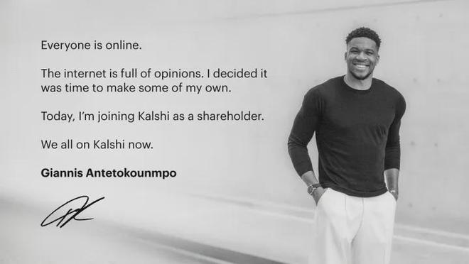 字母哥官宣:以股东身份加盟体育预测平台Kalshi Sports。