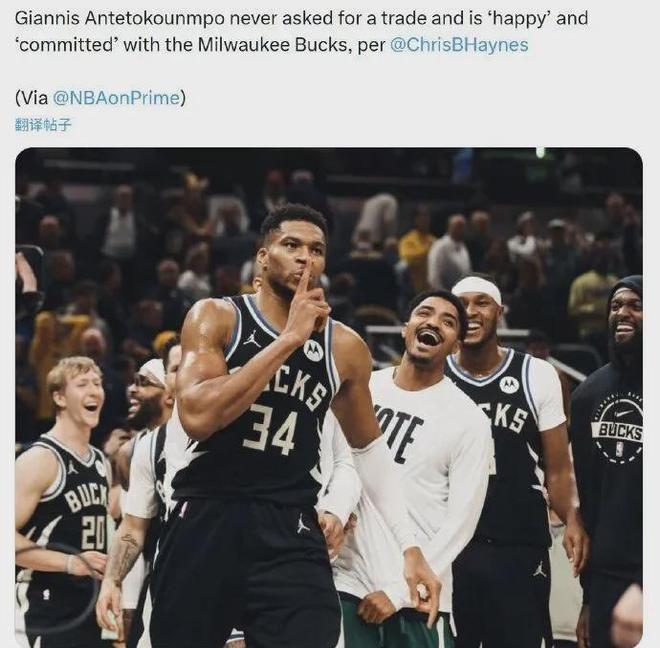 话说名记Haynes近日透露称,字母哥从未申请交易,对能为雄鹿效力感到快乐且忠诚。