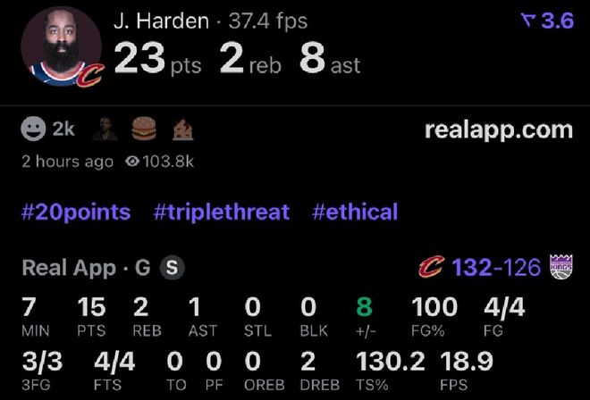 哈登骑士首秀先抑后扬,上半场6中1,下半场7中6包括关键时刻连续轰进两记三分球,最终全场出战约32分钟,投篮13中7(三分8中5),罚球4中4贡献23分2板8助1断,带队132-126击败国王。
