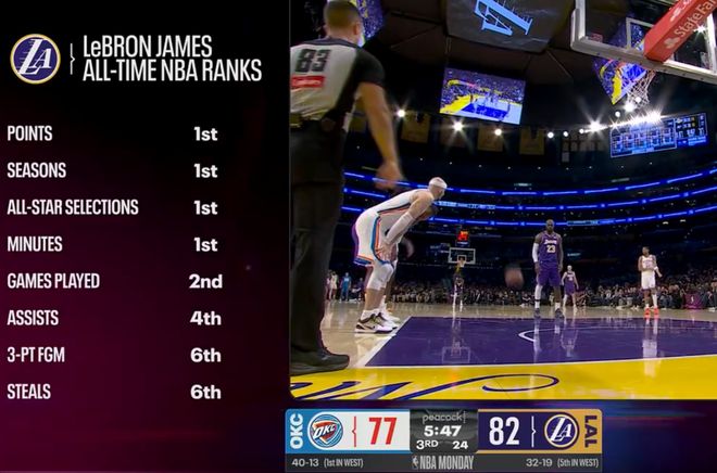 全场比赛,詹姆斯35分钟,17中9,三分4中0,罚球6中4,拿到22分10助攻6篮板1抢断,命中率52.9%,詹姆斯再度刷新历史最年长单场10+助攻的纪录。