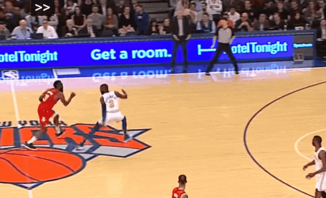 然后就是2018-19季,哈登研发出了双后撤步。
