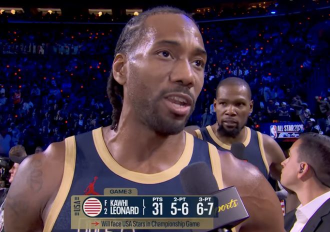 由于挖坑太大,导致条纹队根本无力回天,决赛提前失去胜负悬念,条纹队最终也是输给星辰队无缘夺冠。莱昂纳德在决赛表现不佳,他4中0颗粒无收,仅依靠罚球得到1分,从而三场比赛合计得到37分,作为东道主无缘夺冠颇为无奈。