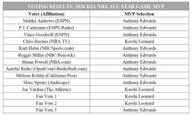 北京时间2月16日,递补入选的莱昂纳德成为本届全明星正赛唯一的“东道主”球员,毕竟今年是在快船主场举办。莱昂纳德连续三场出战,其中第二场他单节狂轰31分开启“战神卡”模式,但决赛4中0仅得到1分低迷。虽然莱昂纳德未能在决赛率领条纹队取胜夺冠,但他三节比赛合计狂轰37分,依然是条纹队表现最出色的球员,也是获得4票的全明星投票,毕竟只有他和爱德华兹获得票数。