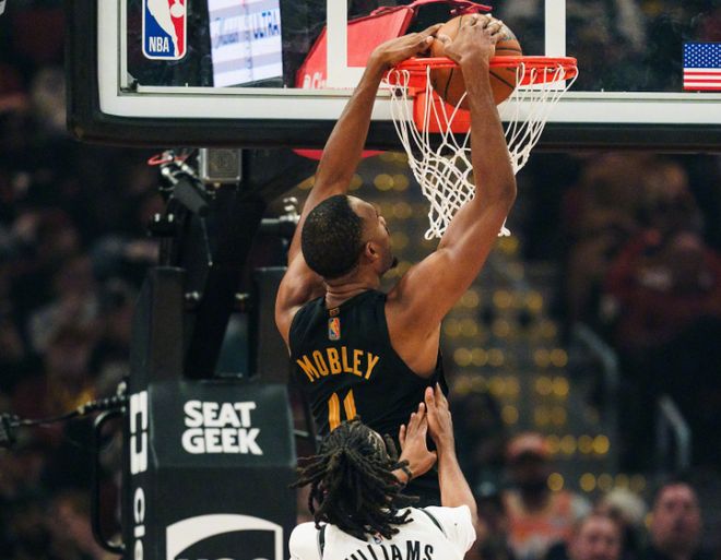 而哈登来到骑士后,他在场期间,球队进攻效率124.9,完美适配球队。好消息是莫布里在休战7场后迎来复出。此外全明星周末,谈论最多的是老詹有可能回骑士,这里面难度最大的就是薪资问题,我们也具体分析,要么拆阵容,要么可能哈登要继续降薪。回顾一下本场比赛,开场阿伦造杀伤后,哈登助攻韦德轰进追身三分,米切尔喂饼莫布里快下暴扣,此后米切尔抛投+助攻韦德接球轰三分,哈登抢断克罗尼,反击助攻米切尔起飞劈扣,骑士打出14-3的开局!篮网在克罗尼和小波特带领下追进比分。