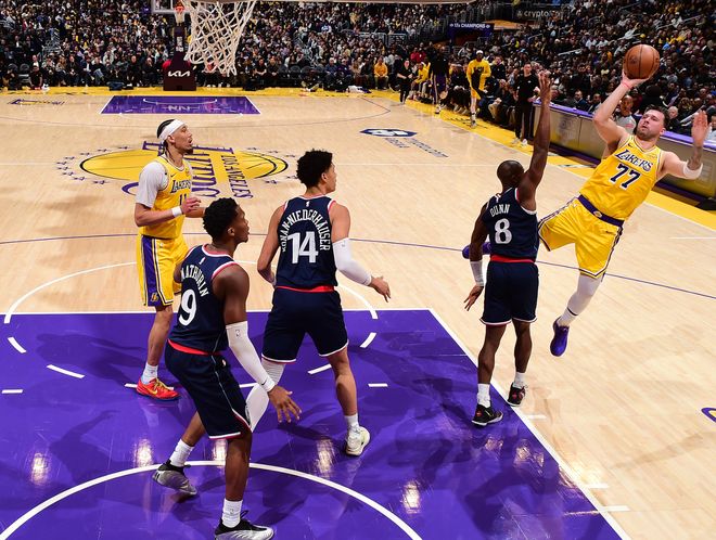 湖人:东契奇、里夫斯、斯玛特、詹姆斯、艾顿;