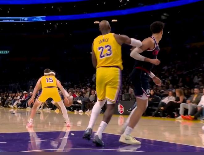 末节开场快船很快抹平分差,里夫斯关键三分命中,马瑟林打艾顿翻身中投命中,东契奇在篮下被帽,大洛三分命中完成反超,雷迪克暂停后斯玛特三分回应,莱昂纳德弧顶三分又回应,斯玛特再来一个2+0,东契奇三分命中快船暂停。暂停后小卡(左脚踝伤势)被泰伦卢换下,里夫斯制造一个进攻犯规,马瑟林6犯离场,东契奇2+1后琼斯回应三分,斯玛特抛投2+0,琼斯2+0回应,东契奇两罚命中,湖人失误但巴图姆三分不中比赛完结。