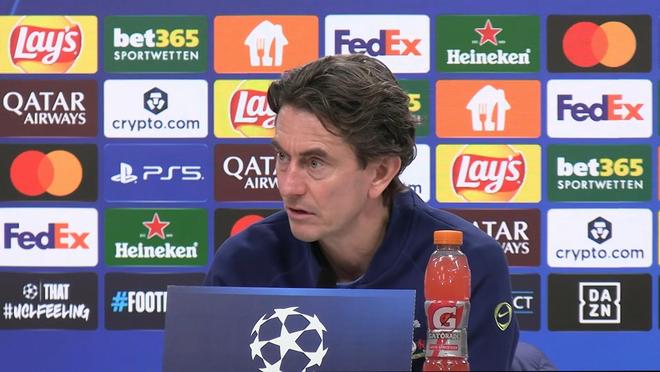 所以我预计明天会是一场非常艰难的比赛,他们会采取人盯人的压迫。我们知道他们的转换进攻非常出色,虽然他们在纸面上可能已经没有什么可争夺的了,但有时候这种状态反而能让你踢得更自由。我在足球界待得够久了,深知你永远不知道明天会面对什么。我们当然需要专注于自己,同时也要对法兰克福保持巨大的尊重。我们清楚他们的所有实力,这毫无疑问。