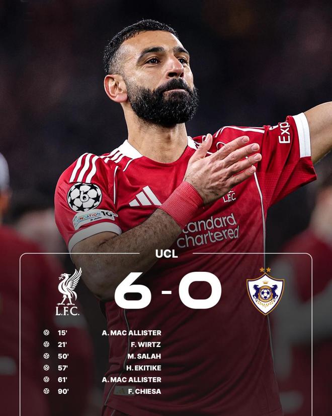 与阿森纳的稳定不同,利物浦本赛季表现像过山车一样刺激。联赛起伏、欧冠曾意外输球,但末轮面对卡拉巴赫,红军踢出了一场久违的屠杀。