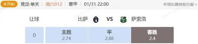 竞足 周六012 意甲 比萨VS萨索洛