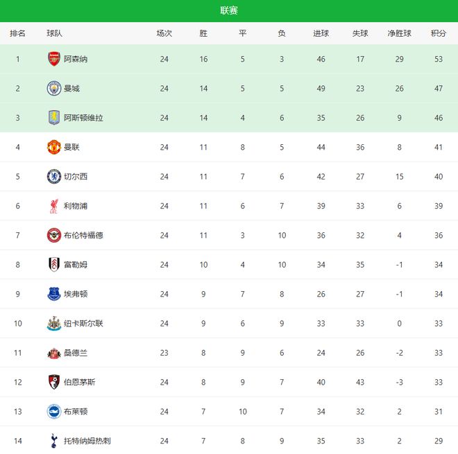 随着曼联3-2+曼城2-2爆冷!英超最新积分榜:维拉丢分 红魔回前四
