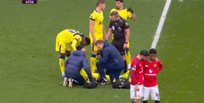 第45分钟,阿马德放倒西蒙斯,吃到黄牌