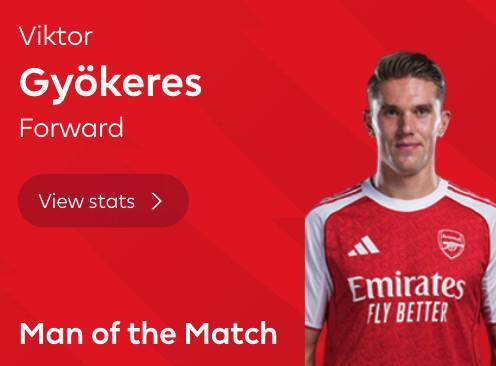 替补双响,哲凯赖什当选阿森纳vs桑德兰全场最佳球员