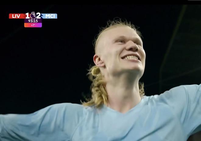 此役客场对阵利物浦,哈兰德在比赛第93分钟主罚点球破门,帮助曼城2-1反超比分。