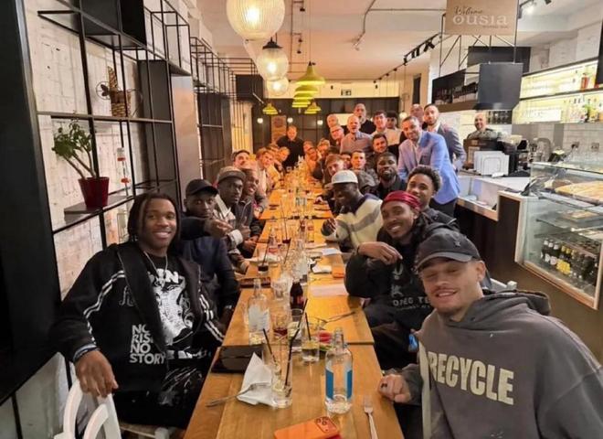 这次团建聚餐的照片已在网上流传,照片最前排能看到:哈维-西蒙斯、斯彭斯、威尔逊-奥多贝尔、伊夫-比苏马、帕佩-萨尔、乌多基、凯文-丹索。