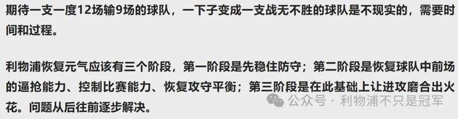之前我们说过多次“利物浦恢复元气需要三个阶段”: