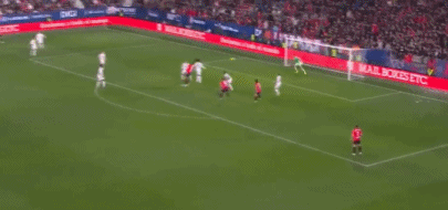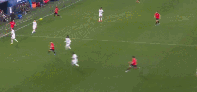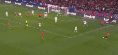 伤停补时第3分钟,居莱尔角球传中,楚阿梅尼凌空扫射,埃雷拉飞身将球托出横梁。